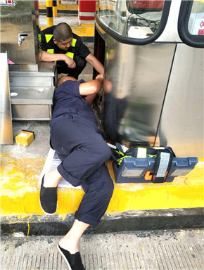 面對新的挑戰(zhàn),中心隊員毫不畏懼,憑著嫻熟的技能,做網(wǎng)線、接電源、找插板、聯(lián)系授權(quán)......忙得連喝水時間都沒有,他們或彎腰或半蹲,甚至整個人趴到了地面上就是為了找一根相應(yīng)的數(shù)據(jù)線和配置端口。經(jīng)過共同努力,新架設(shè)的收費電腦一次性通過了過車測試,出口車道瞬間增加一個,三車道成了四車道。