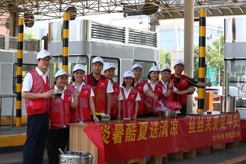 同日開(kāi)始,臺(tái)州收費(fèi)所組織志愿者開(kāi)展“炎暑酷夏送清涼,絲絲關(guān)愛(ài)促平安”為主題的送清涼活動(dòng),所內(nèi)黨員、入黨積極分子及業(yè)務(wù)骨干等20多名志愿者身著統(tǒng)一的志愿者服飾,在車道的安全島上拉起橫幅,搭起“便民服務(wù)臺(tái)”,免費(fèi)向過(guò)往人員送上防暑藥品和所里食堂自制的綠豆湯、青草糊等解暑飲品,喝在口中,甜在心里,司乘人員紛紛贊不絕口。