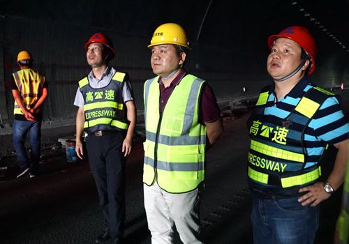 8月8日下午,省公路局高速辦副主任李飛泉、省高速辦養(yǎng)護(hù)監(jiān)管科科長侯訓(xùn)田在集團(tuán)總工程師江輝及市公路局領(lǐng)導(dǎo)的陪同下,赴大溪嶺-湖霧嶺隧道機(jī)電改建施工現(xiàn)場指導(dǎo)工作,查看施工進(jìn)展情況。