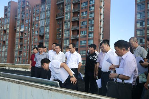 圖為臺(tái)州市副市長(zhǎng)張加波在調(diào)研現(xiàn)場(chǎng)聽(tīng)取相關(guān)匯報(bào)