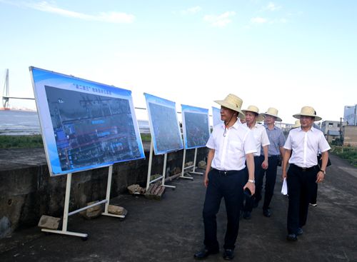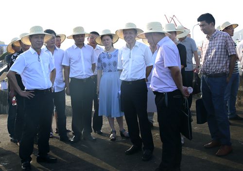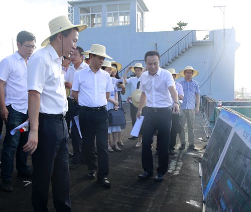 圖為臺(tái)州市副市長(zhǎng)張加波實(shí)地察看海門港埠碼頭與新港區(qū)規(guī)劃建設(shè)用地