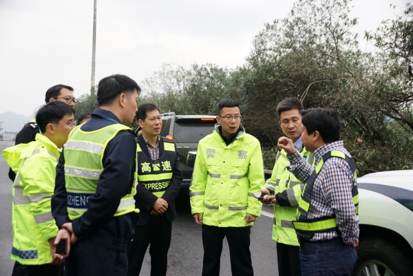檢查組現(xiàn)場(chǎng)勘查 在各交通管控點(diǎn)、分流點(diǎn),檢查組對(duì)一直24小時(shí)堅(jiān)守在崗位上的工作人員表示慰問,并希望他們能繼續(xù)保持昂揚(yáng)的斗志,直到完成這項(xiàng)重點(diǎn)工程。