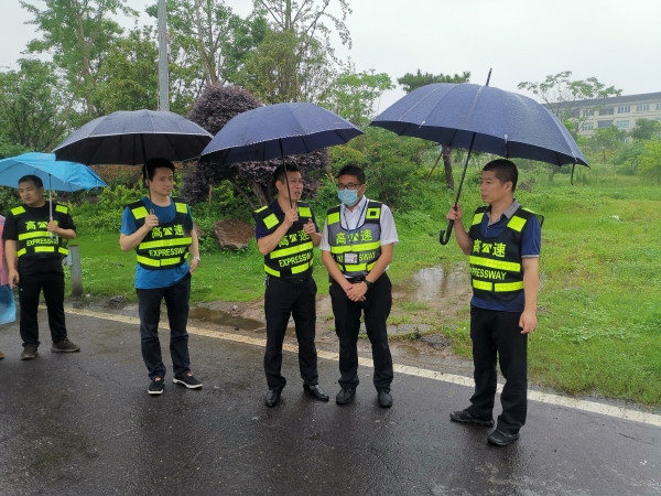 集團(tuán)總工程師江輝到一線開(kāi)展汛期安全隱患及 收費(fèi)站入口管控檢查 6月8日上午,集團(tuán)總工程師江輝帶領(lǐng)工程養(yǎng)護(hù)部、征費(fèi)管理部、安保部、養(yǎng)護(hù)公司等人員,冒雨開(kāi)展汛期橋隧邊坡安全隱患排查及收費(fèi)站入口管控檢查。