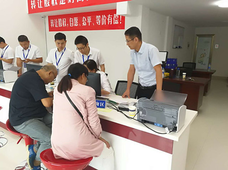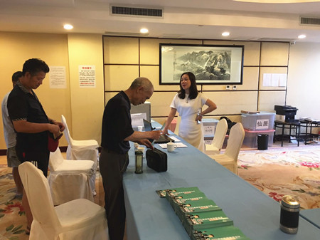 圖為集團(tuán)副董事長、總經(jīng)理張建平在椒江收購點(diǎn)為股東服務(wù)