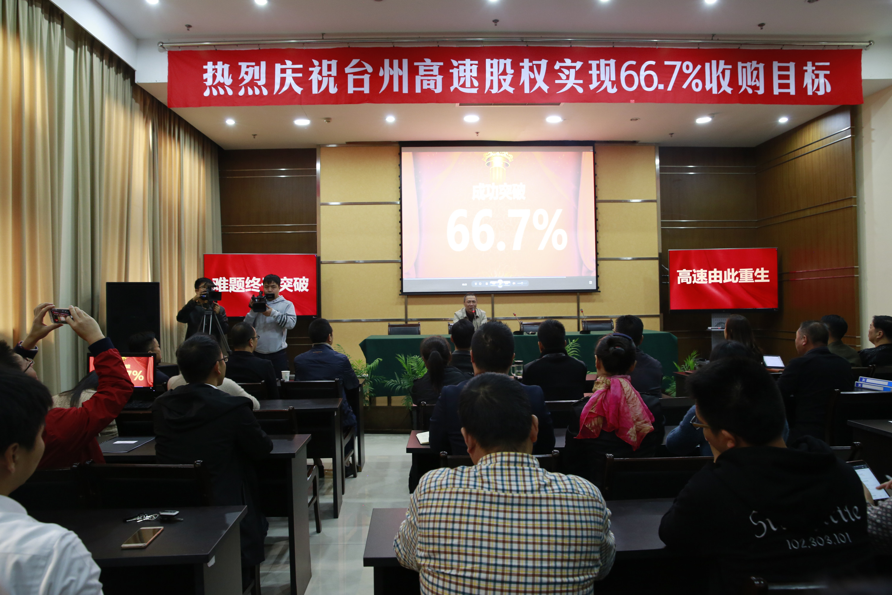 臺(tái)州高速股權(quán)集中和優(yōu)化工作領(lǐng)導(dǎo)小組辦公室主任、臺(tái)州高速集團(tuán)總經(jīng)理張建平鄭重地宣布:“至此,全市共完成臺(tái)州高速股權(quán)轉(zhuǎn)讓6947萬(wàn)股,臺(tái)州市屬國(guó)企及黃巖財(cái)務(wù)開(kāi)發(fā)公司合計(jì)持股數(shù)1.441億股,完成了66.7%的預(yù)定收購(gòu)目標(biāo)?!?/span>