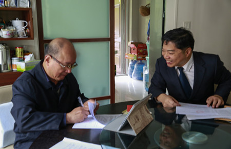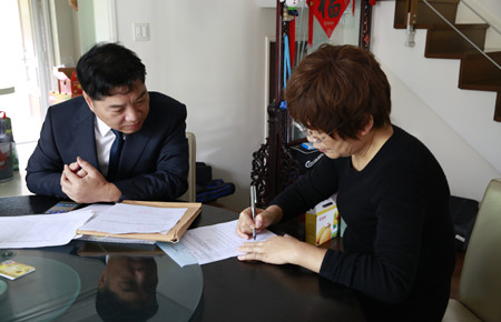圖為原市人大副主任胡宣義妻子簽訂股權轉讓協(xié)議 11月14日上午,集團總經(jīng)理助理項同富繼續(xù)上門服務,為離退休老干部胡宣義夫婦辦理股權轉讓手續(xù)。 沒等項同富介紹完此次股權收購的背景情況,胡宣義便“搶”先簽下了轉讓協(xié)議書,還著急召喚家中的另一位股東(他的妻子)過來簽字。