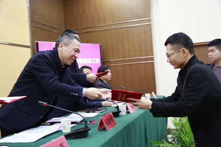 圖為集團(tuán)總經(jīng)理張建平給先進(jìn)個(gè)人頒發(fā)獎狀