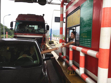 圖為臺(tái)州南收費(fèi)所發(fā)放現(xiàn)場