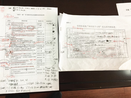圖為檢查黨建臺賬現(xiàn)場