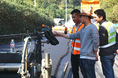 “路面銑刨有時會出現(xiàn)銑刨不完全存在夾層的現(xiàn)象,如不清理干凈則會嚴(yán)重影響攤鋪后路面的平整度。”楊金梁介紹道,所以攤鋪時每道工序,他都時刻緊盯,確保攤鋪的路面不存在任何瑕疵。