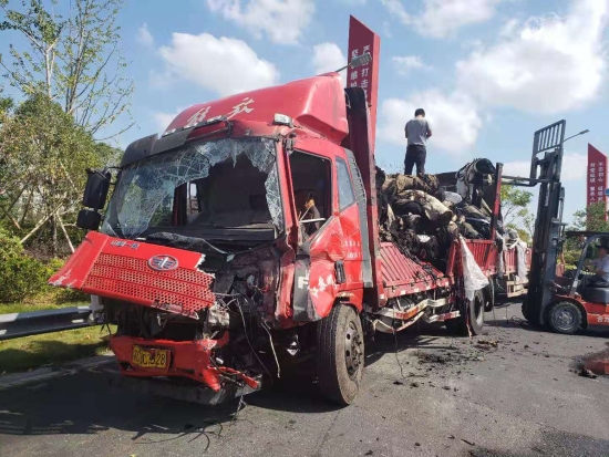 大火在現(xiàn)場留下了幾乎成為殘骸的兩輛車、滿地的油污、車輛碎片、燒剩下的布匹,一股刺鼻的臭味一公里外都聞得到。油污讓路道變得又膩又滑。更為嚴重的是,隨著時間的推移,從事故點開始,堵車開始一公里一公里的蔓延,幾乎快到了臺州收費所。