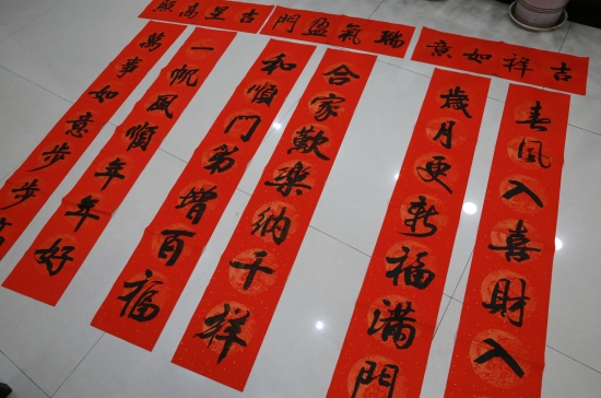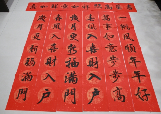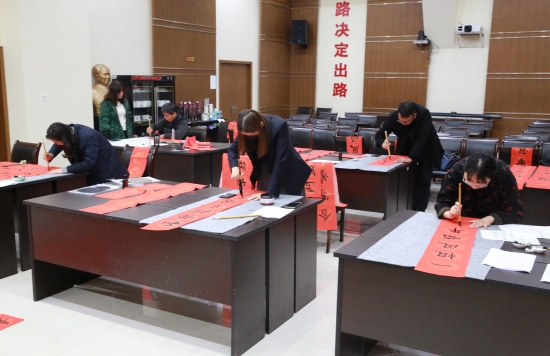 圖為學員學習寫書法 本次活動由集團辦公室牽頭組織,以集中書寫和分開書寫相結(jié)合的方式進行。參與者在百忙之中抽出自己的業(yè)余時間,積極參與到活動中來,共同書寫500多幅春聯(lián)作品。春節(jié)臨近,集團全體員工和集團兩個結(jié)對村的100戶村民都將收到暖暖的“送春聯(lián)”祝福。 當日集中書寫現(xiàn)場,參與者們認真埋頭書寫,并不時地相互請教學習。有的下筆蒼勁有力、筆精墨妙,有的如行云流水一筆而下,有的力透紙背,一個個大字很快躍然紙上。