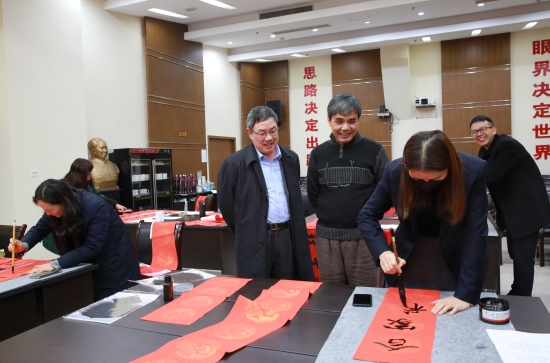 臺州高速集團開展“寫春聯(lián)、送祝?!被顒?/span>   春節(jié)將至,臺州高速集團開展以“迎新春、送祝?!睘橹黝}的寫春聯(lián)、送春聯(lián)活動,并邀請書法老師到場指導。來自集團各部室、所、子公司的書法愛好者紛紛前來參與,集團董事長、總經(jīng)理陳文波到場觀摩。
