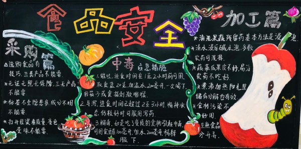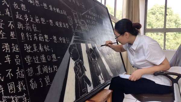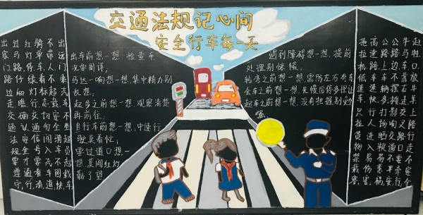 活動前期,臨海南收費所臨時組建五人板報小分隊,充分利用空余時間搜集有關安全教育資料,對內(nèi)容、畫面進行認真整理、篩選。最終決定三個板塊,以提高安全教育為目的,以不同風格主題來呈現(xiàn),從多方面、多角度設計與繪制,達到了更好的安全教育宣傳效果。 活動開展后,參與者們分配好各自的任務后,出黑板報的工作便熱火朝天地展開了。大家利用自身的特長,通過粉筆字、繪畫等藝術形式,對黑板報進行了精心的設計,主題鮮明,內(nèi)容充實,圖文并茂,趣味性強,全方位、多角度地宣傳了《消防安全》、《食品安全》、《交通安全》三大主題。其中在交通安全宣傳方面,如何使交通安全內(nèi)容,更加直觀形象、簡單易懂的、眾人易于接受呢?大家通過反復嘗試,決定打破傳統(tǒng)模式,避免枯燥說教,把交通宣傳教育知識融入到兒歌中,通過朗朗上口的兒歌形式,傳達一些基本的交通規(guī)則,幫助大家養(yǎng)成自覺遵守交通規(guī)則的意識,提高自我安全防護能力。最后經(jīng)過大家日夜趕工,黑板報的工作在大家的共同努力下順利完成。