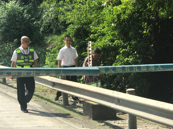 國慶期,臨海南收費站口一位年過花甲的附近村民執(zhí)意要步行上高速,當班工作人員及時勸阻,一路陪同,保障了老人家的人身安全,也維護了高速公路的正常秩序。