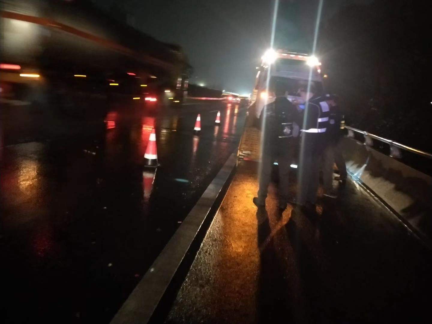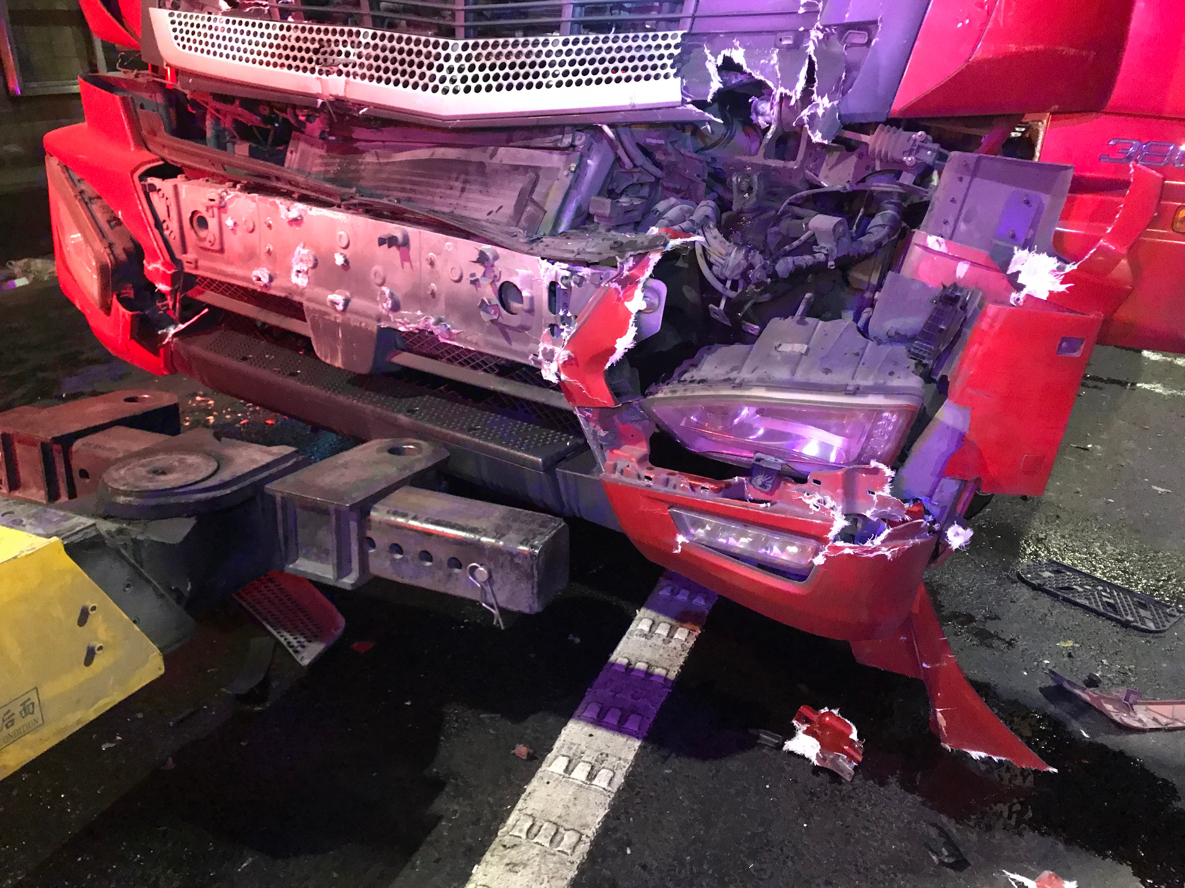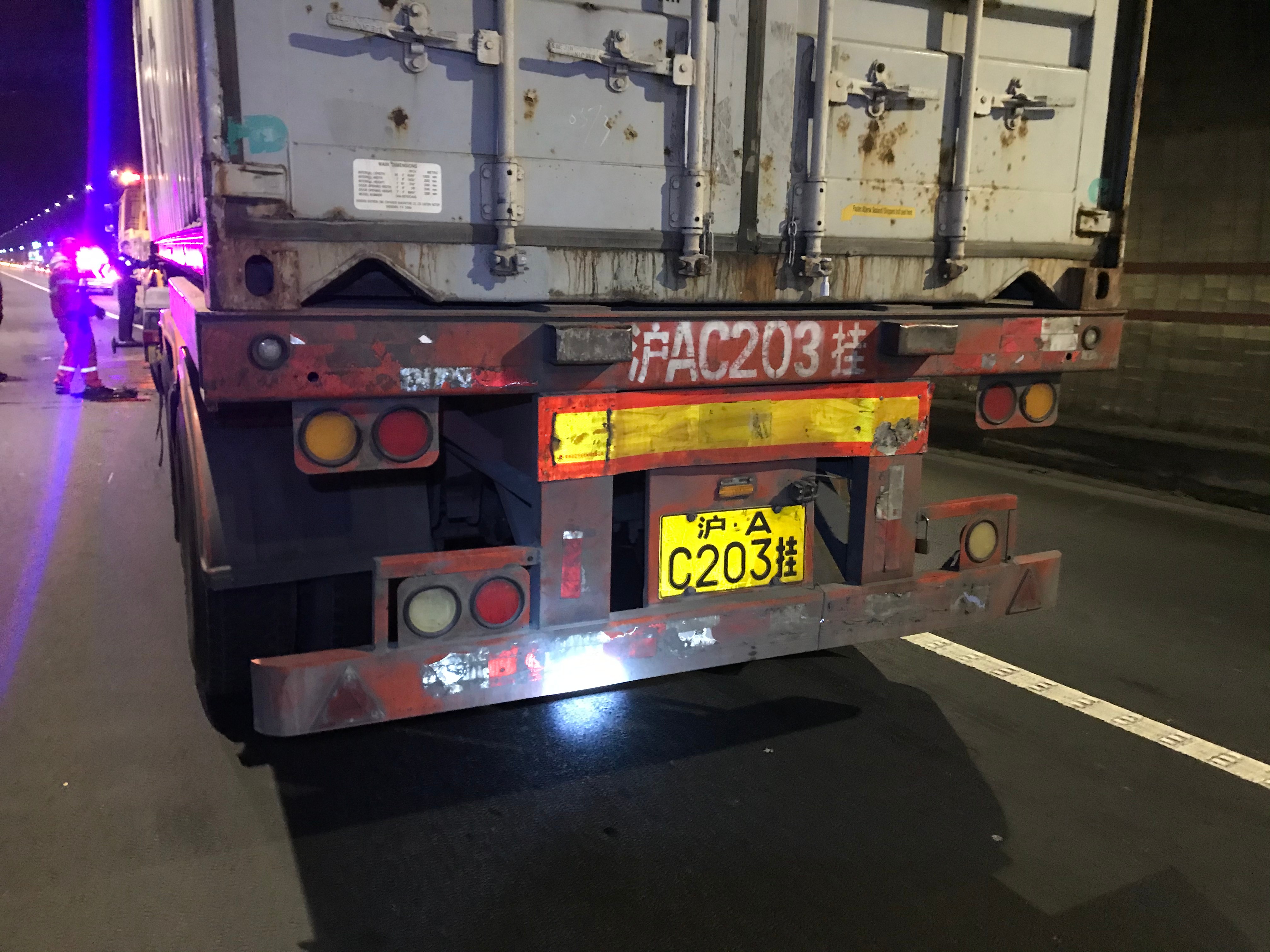 1月14日晚21:30分,甬臺(tái)溫高速寧波方向距離臺(tái)州南收費(fèi)站約5公里的路段,一輛半掛車與一輛小轎車發(fā)生碰撞,現(xiàn)場急需一大一小兩輛拖車。