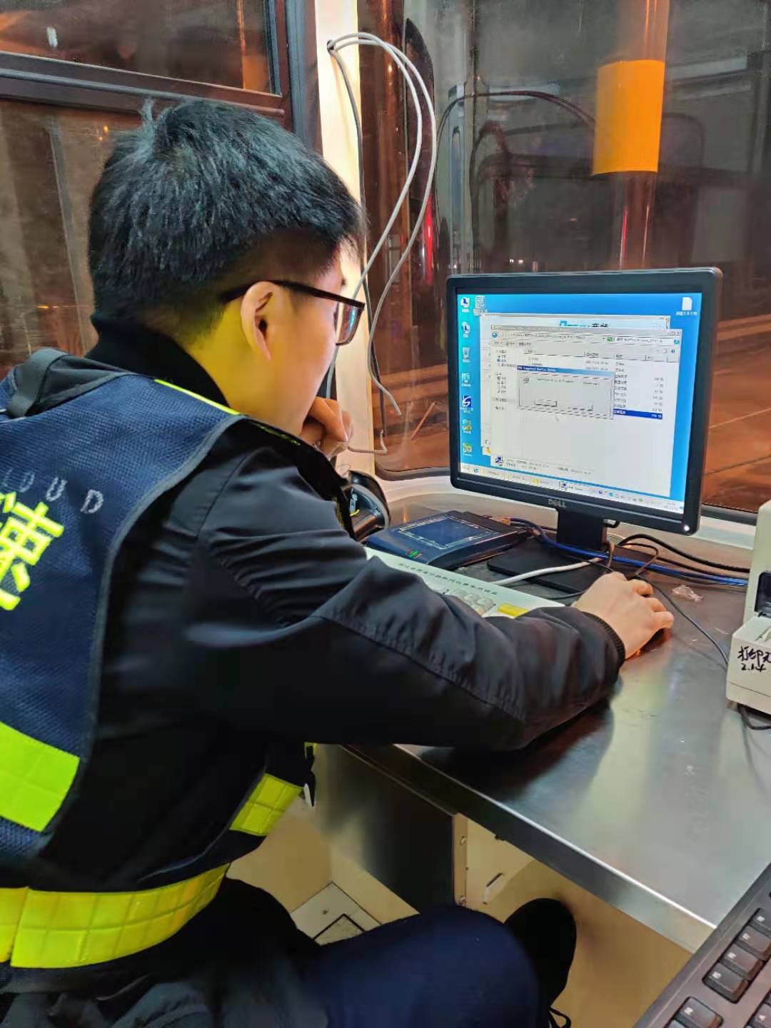 22日一早,中心電工配合廠家人員在車道繼續(xù)查線、接線,安裝崗?fù)さ幕A(chǔ)設(shè)備,系統(tǒng)員則在機(jī)房負(fù)責(zé)安裝新電腦的收費(fèi)系統(tǒng)及相關(guān)設(shè)備驅(qū)動(dòng)。大家各司其職、各盡其責(zé),僅一天時(shí)間就將近百根線纜一一對(duì)應(yīng)并成功與外圍設(shè)備對(duì)接,與此同時(shí),系統(tǒng)員也恢復(fù)了原電腦中的數(shù)據(jù)并成功導(dǎo)入到新電腦中,避免了數(shù)據(jù)中斷。在修復(fù)過程中,搶修人員也曾遭遇各種困難,有些設(shè)備安裝需要專用工具,部分零散配件、電源等一般商鋪都沒有供應(yīng),但這些并沒有難倒他們,而是利用各自資源,跑遍了市區(qū)的大街小巷,或借或買,最后都被一一解決。