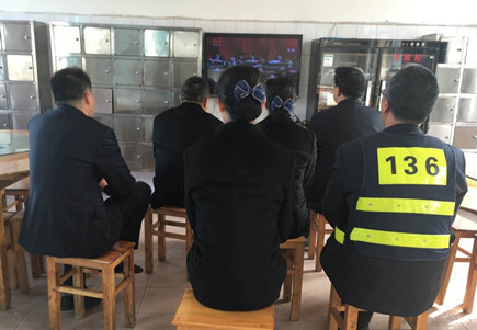 圖為公司領(lǐng)導(dǎo)班子成員、大樓本部黨員在觀看直播