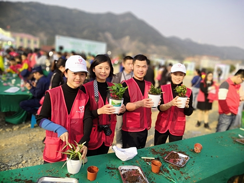 圖為臺州市青年志愿者協(xié)會成立大會現(xiàn)場 當(dāng)天是一年一度的植樹節(jié),公司還組織各部門、收費所共20多名青年志愿者乘車前往路橋飛龍湖,參加由共青團(tuán)臺州市委組織的以“擁抱灣區(qū) 青春力量”為主題的青少年植綠護(hù)水活動。