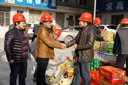 上圖為慰問現(xiàn)場 每到一個標段,慰問組都詳細了解項目當前施工情況以及春節(jié)期間的工作安排,為他們送上了慰問品,對于那些臨近春節(jié)仍奮戰(zhàn)在工地一線的工人們,慰問組代表市政公司表達了衷心的感謝,并提早向全體工作人員致以新春佳節(jié)的祝福。 鐘彪指出,內(nèi)環(huán)路(黃巖段)在2017年度建設時間緊,任務重,各項目部在搶抓工程進度的同時要注重安全生產(chǎn),關心工人生活,保障工人人身和財產(chǎn)安全,特別是過年期間,各項目部負責人和值班人員要保持24小時通訊暢通,保證各項工作正常運轉(zhuǎn),確保平安過節(jié)。 張琛