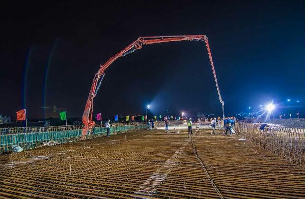 圖為4月21日凌晨,內(nèi)環(huán)路8#立交第二聯(lián)箱梁頂板澆筑場景。鐘 彪攝 8#立交工程位于黃巖區(qū)紅三村和紅四村,主線橋8#立交全長1300多米,是臺州市首座全互通四層立交。東接九峰公園,西臨黃巖主城區(qū),上跨二環(huán)東路,南北連104國道,作為內(nèi)環(huán)路唯一一個位于城鄉(xiāng)接合部關(guān)鍵節(jié)點,復(fù)雜的施工環(huán)境,繁瑣的交通組織,給工程的正常推進(jìn)帶來了嚴(yán)峻的考驗。“我們?nèi)w參建人員根據(jù)現(xiàn)場情況不斷優(yōu)化方案,細(xì)化措施,狠抓落實,連續(xù)作戰(zhàn),保證每月完成既定任務(wù)指標(biāo)?!?#立交項目現(xiàn)場負(fù)責(zé)人金小琳表示。 目前,8#立交主線橋梁順利貫通,離11月11日主線通車的目標(biāo)又邁進(jìn)了一大步。據(jù)臺州高速市政建設(shè)投資有限公司副總經(jīng)理何翔介紹,接下來的工作重心是在主體結(jié)構(gòu)完工的基礎(chǔ)上抓緊匝道及附屬構(gòu)筑物的施工,爭取讓臺州市民能盡早用上這條民心路。 (本文轉(zhuǎn)自《臺州日報》2017年4月22日第01版) http://paper.taizhou.com.cn/tzrb/html/2017-04/22/content_794805.htmfrom=groupmessage&isappinstalled=1