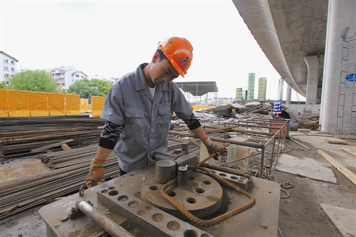 馬進(jìn)學(xué)告訴記者,在鋼筋工這么多道工序里,將加工好的半成品鋼筋通過彎曲機(jī)制作成型是一道需要細(xì)心和耐心俱備的工序,無論是加工時(shí)的站位還是彎曲點(diǎn)的選擇都是對(duì)一個(gè)鋼筋工技藝的考驗(yàn),所以工作的時(shí)候必須集中精神格外小心。